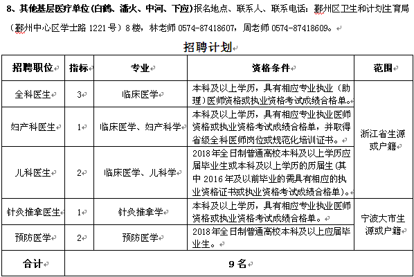 3.鄞州区卫生和计划生育局下属事业单位正式在编人员不能报考。