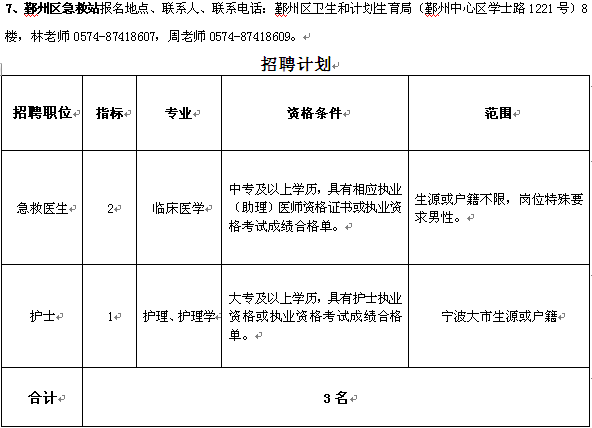 3.符合条件的报名人数与招聘职位指标数之比不足3:1的,则相应核减或取消该职位招聘指标。报考职位取消的考生若符合其他职位报考条件的,可以改报其他职位,具体由区卫计局通知考生本人。根据以往招聘报名情况,认定本次招聘的急救医生职位为长期招聘不足的紧缺职位,符合招聘条件的应聘人数与招聘职位人数比不足3:1时,按符合招聘条件应聘人数进入招聘程序;本招聘公告将在全国招聘信息公共服务网(www.cjob.gov.cn/cjob/f_index.do)上发布。