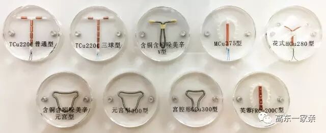 宫内节育器:T型含铜、花式、宫腔型等7种。