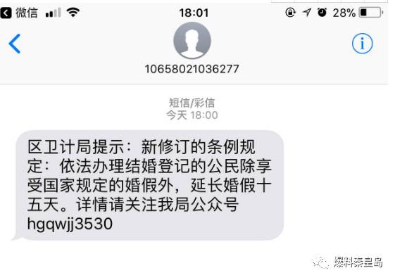 今天,很多秦皇岛朋友手机里都收到了这样一条信息!依法办理结婚登记的秦皇岛人除享受国家规定的婚嫁外,还能延长15天?十五天?壹拾伍天整?