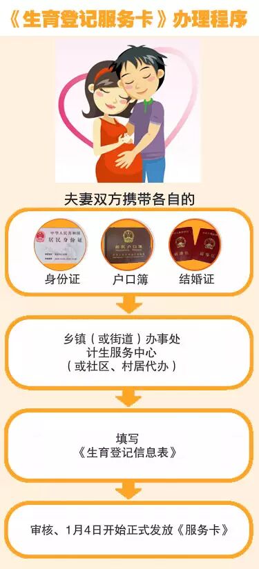 朱煊赫介绍,准备生育第一个子女或第二个子女的夫妻,生育前可到任何一方户籍所在地或现居住地乡(镇)人民政府、街道办事处或县、乡办证大厅办理生育服务登记,领取生育登记服务卡。“今后,生育保险金的领取、住院分娩补助、孕前优生服务、请产假都凭生育登记卡。”
