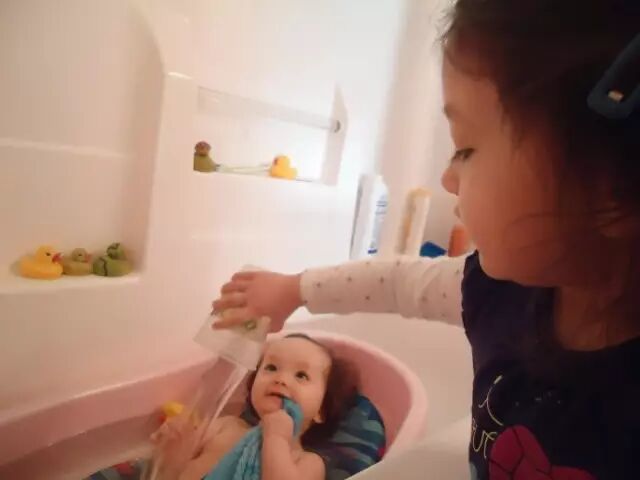 有了二宝,老大不自觉的长大了,开始会很照顾小的,出去有谁欺负二宝,他马上就会过去护住。在家会给小宝讲故事,教小宝自己在幼儿园学过的数字,拼音和画画...