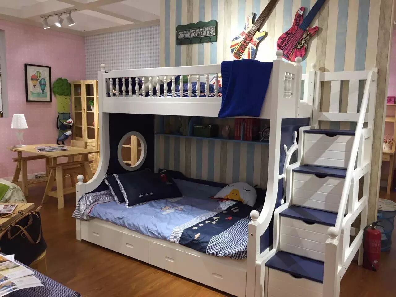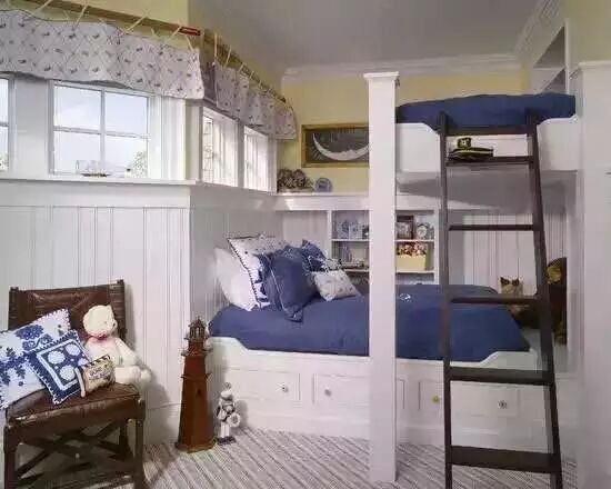 特别是那些中小户型的儿童房,面积大多在10平方米左右,如果再添一个孩子,就需要在这方寸之间设计出两个孩子的休息、学习甚至还有娱乐空间,这样的话,建议这种家庭在购买儿童家具时,就应该选择最节省空间的多功能组合式家具,特别是孩子的睡眠空间,更应以上下双床为主,既相对独立,又不乏亲密,又有节约空间,以满足“二孩”的使用需求。双床的最大好处就是无需大成本地重新购买大房,重新装修,就能拥有一个全新实用的儿童房!