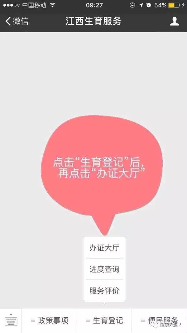 为稳妥有序实施全面两孩政策,进一步推进生育服务证制度改革,切实做到简政便民,提高计划生育服务管理水平,江西省启用计划生育服务系统,一、二孩生育登记和再生育审批可在网上办理,同时一、二孩生育登记也可以在微信公众号办理啦!