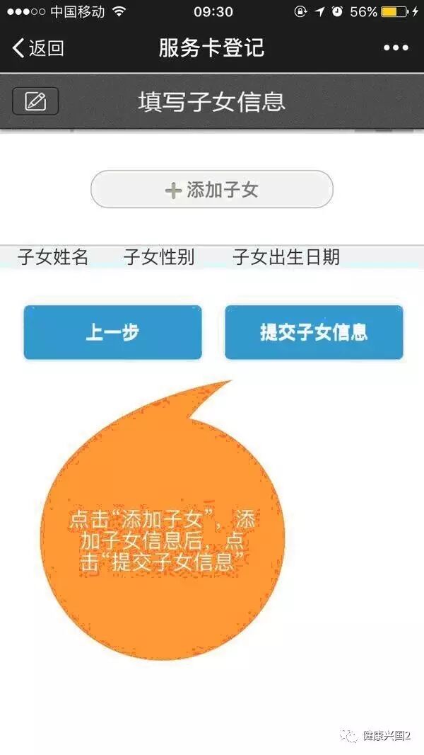 点击“添加子女”,添加子女信息后,点击“提交子女信息