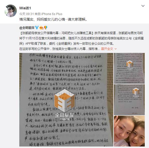10月9号一大早,全明星探就爆出了张靓颖妈妈的公开信,信中提到:
