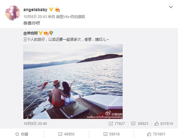 8号,黄教主发微博证实baby已怀孕,传了大半年的新闻这次终于得到孩子亲爹亲妈的认证。