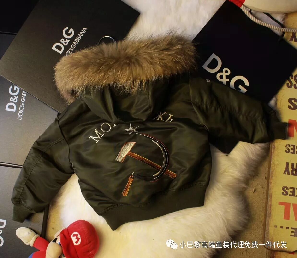 独家实拍~~超高品质童装~~D&G杜嘉班纳儿童专用大狐狸毛羽绒服,,大牌设计师的大胆尝试,,简约/超哈风格 的设计,让羽绒服从此变得不在臃肿,潮范十足。。大厂精制,,实物品质极佳,澳洲进口大狐狸毛领配国标90绒,衣服上身不仅非常的暖和而且个性十足,男孩女孩都可以穿,尺码:110-120-130-140-150(标准码数:适合身高100-150之间的穿) 出货配专柜包装盒和手提袋 很有档次 送人用都OK