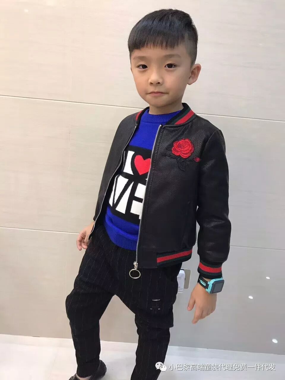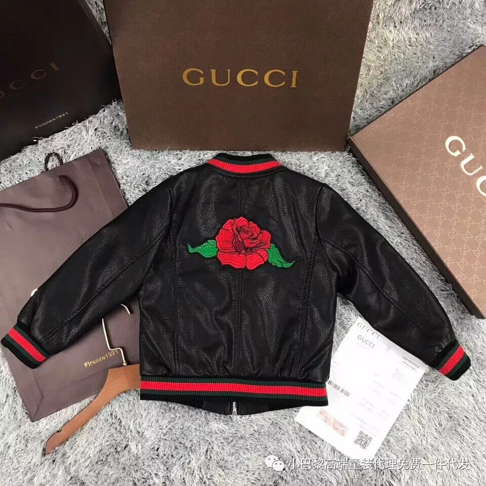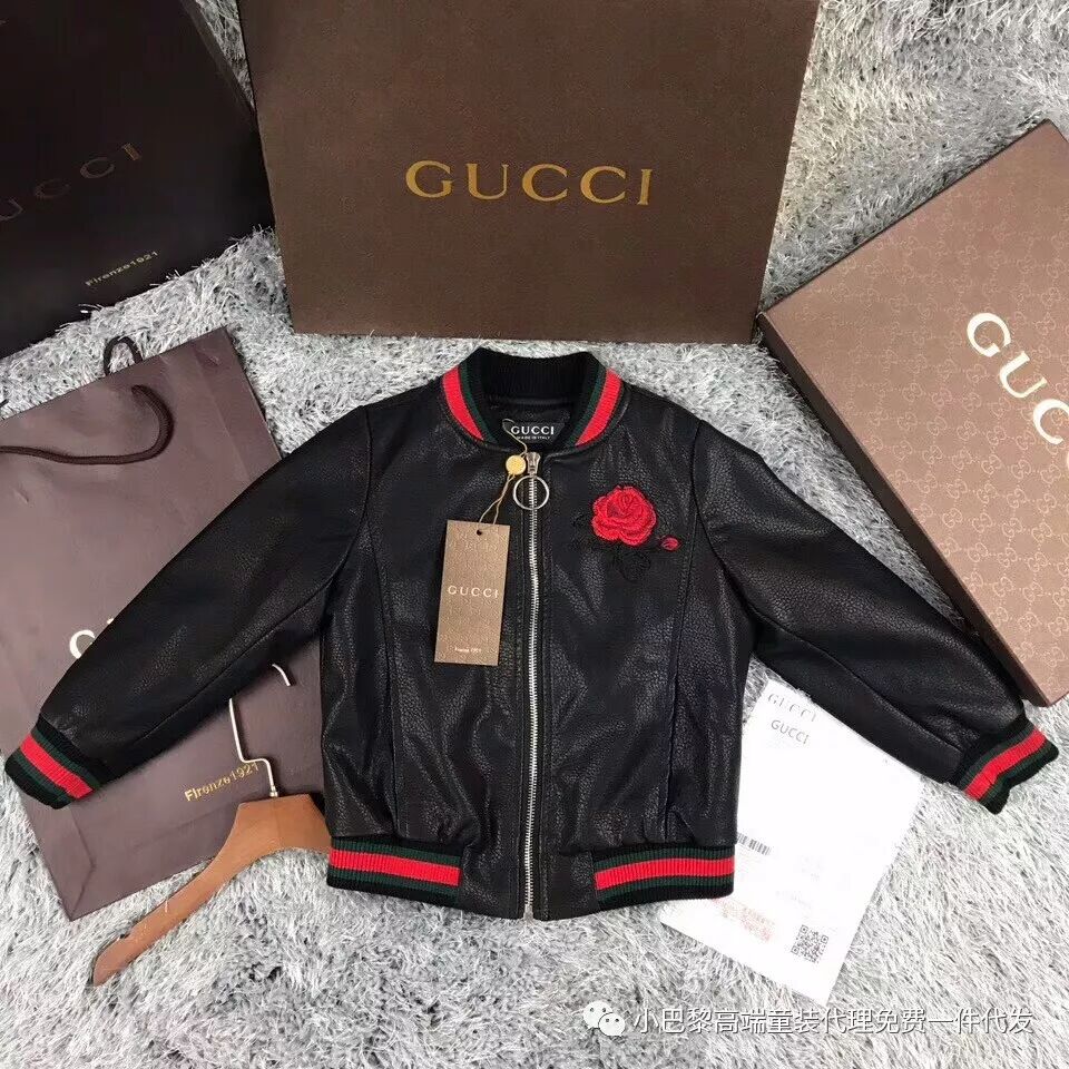 高端KIDS GUCCI/古驰来自意大利奢侈品品牌,2017秋冬专柜同款皮衣,进口高端真皮羊皮外套 手感超好 明星同款发售 内里加棉 质量保证 ️110-160码 现货 黑色 出货配香港商场连卡佛手提袋