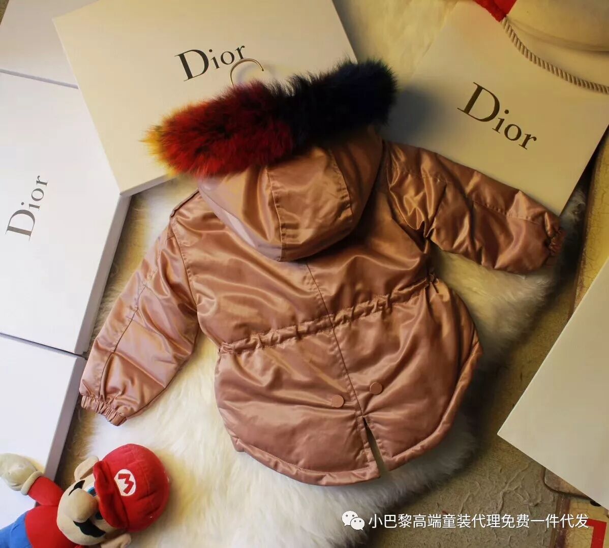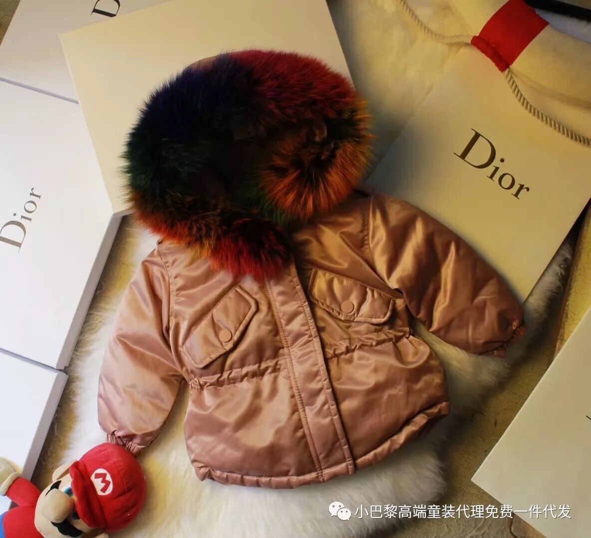 独家实拍~~超高品质童装~~Dior迪奥儿童专用大狐狸毛羽绒服,,大牌设计师的大胆尝试,,简约/休闲的设计风格和大胆的色彩搭配,效果极佳。。上身非常的时尚前卫漂亮,,进口彩色狐狸毛和国标90绒,衣服偏厚,冬天保暖极佳。。尺码:90-100-110-120-130(标准码数:适合身高85-130之间的穿) 出货配专柜包装盒和手提袋 很有档次 送人用都OK