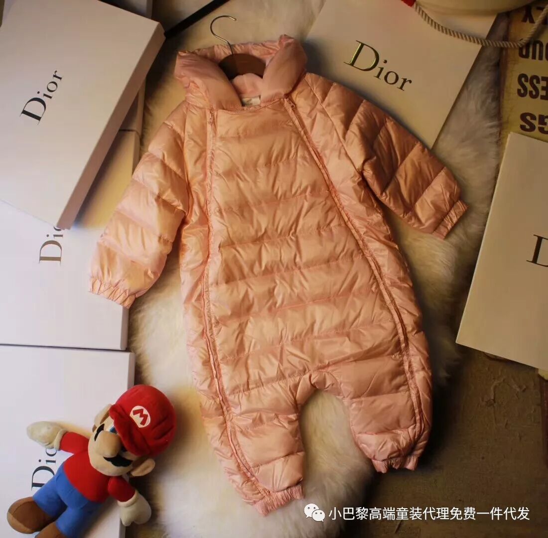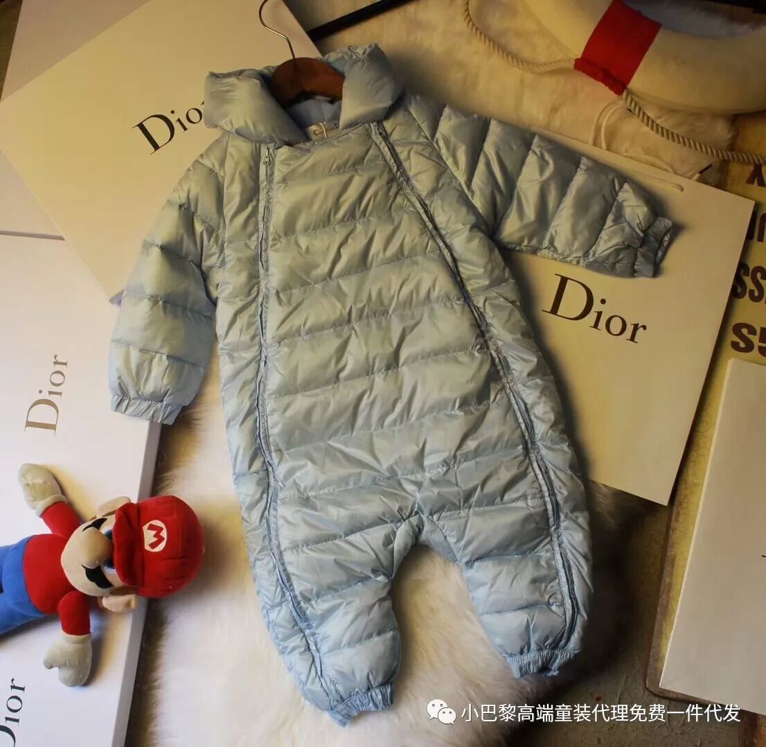 高品质童装Dior/迪奥专柜同步更新儿童羽绒连体服套装,婴童的永远是最好的,,国际5A标准90绒,质地柔软/保暖/而且不容易跑毛, 实物颜色鲜艳,实物上身充满活力,,衣服厚度适中,,质地柔软,,寒冬保暖的极佳选择,,尺码:80/90(适合刚0-2岁以内的穿) 出货配专柜包装和手提袋 很有档次 送人用都OK