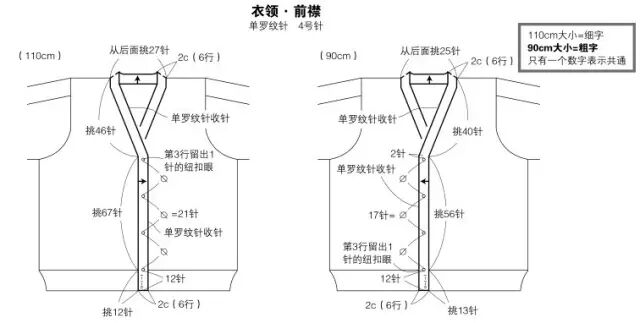 4. 用单罗纹针编织衣领、前襟,终点处用单罗纹针收针。