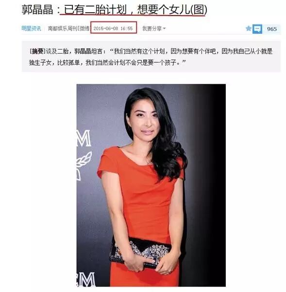 但.....虽然他们不公布,可奔着郭晶晶40岁前生仨娃的期望,吃瓜群众可一直没少瞎操心,郭晶晶第一次被传怀二胎是在两年前(显然这个现在看,明显是捕风捉影,不然哪吒都该出来了⬇️