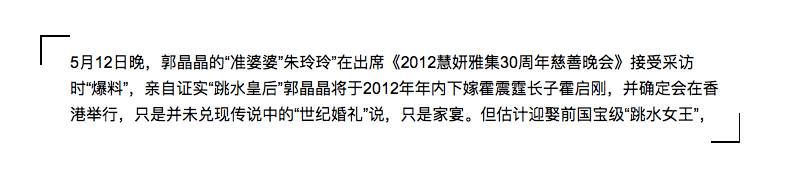要知道她自己可就是豪门啊!2009年《福布斯中国名人榜单》统计,郭晶晶全年收入已经在3000万元左右,仅仅排在姚明、章子怡、易建联后面。更别说她之后越来越高的关注度与相关代言。当年,香港媒体用的就是“跳水女王下嫁霍启刚”这样的词汇⬇️