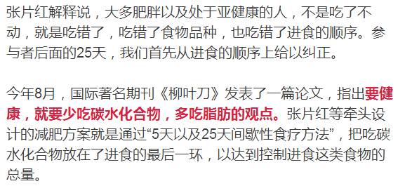 实验效果如何?结果相当惊人,300多人中,只有6人没有瘦下来,“这6个人都在最初的前5天‘偷吃’了计划外的食物。”张片红说。