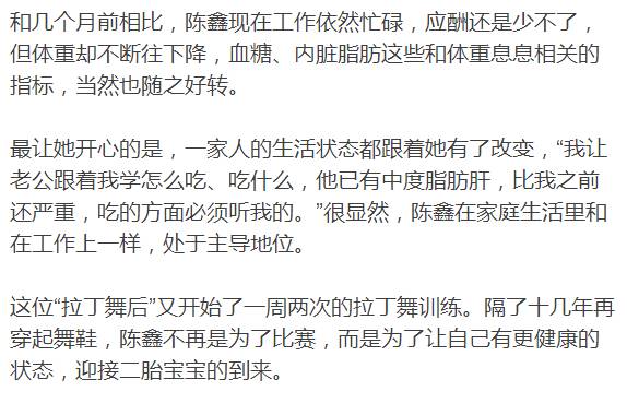 “我现在不但苗条了,也健康了,正在打算生二胎呢。”陈鑫自信满满地说。