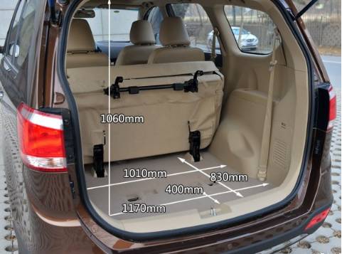 宝骏730的后备厢常规容积为330L,能够放下几个中等的行李箱。其第三排座椅可向前进行翻折,翻折后后备厢的进深为830mm,可以容纳更多的行李及其它物品。