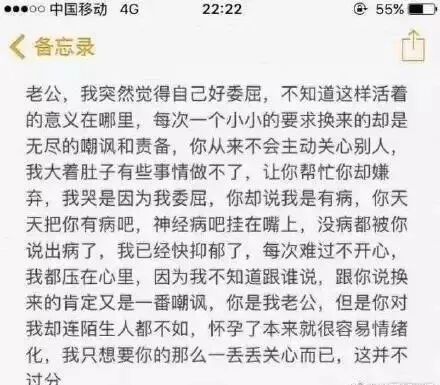我一个从北方嫁到南方的大学师姐,也是因为丈夫的责任缺失,在产后月子期间患上了严重的产后抑郁症。