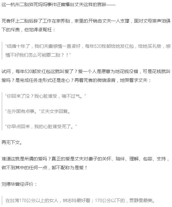 这位杭州二胎妈妈的死,无疑昭示着一个危险的婚姻信号:没有责任感的男人,形同凶手!