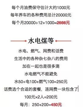 基本生活费用汇总每月:房贷5414.11元+伙食费3500+交通费2666+水电等费用450+生活用品200元=12230.11元