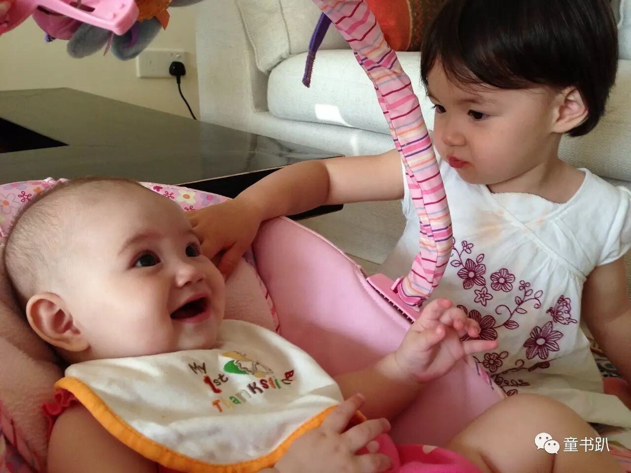 当妹妹还是小婴儿的时候,我肯定不会冒险让姐姐去独立抱她、或者看守她,毕竟她自己刚过完两岁生日,行为逻辑还处于一片糊涂和摸索之中。但是,我会让姐姐在我感知范围内陪妹妹。这也是让姐姐学会不再“骚扰”妈妈自己玩,并且玩的时候有个眼巴巴的小观众。于是,我可以分出手来做其他事。