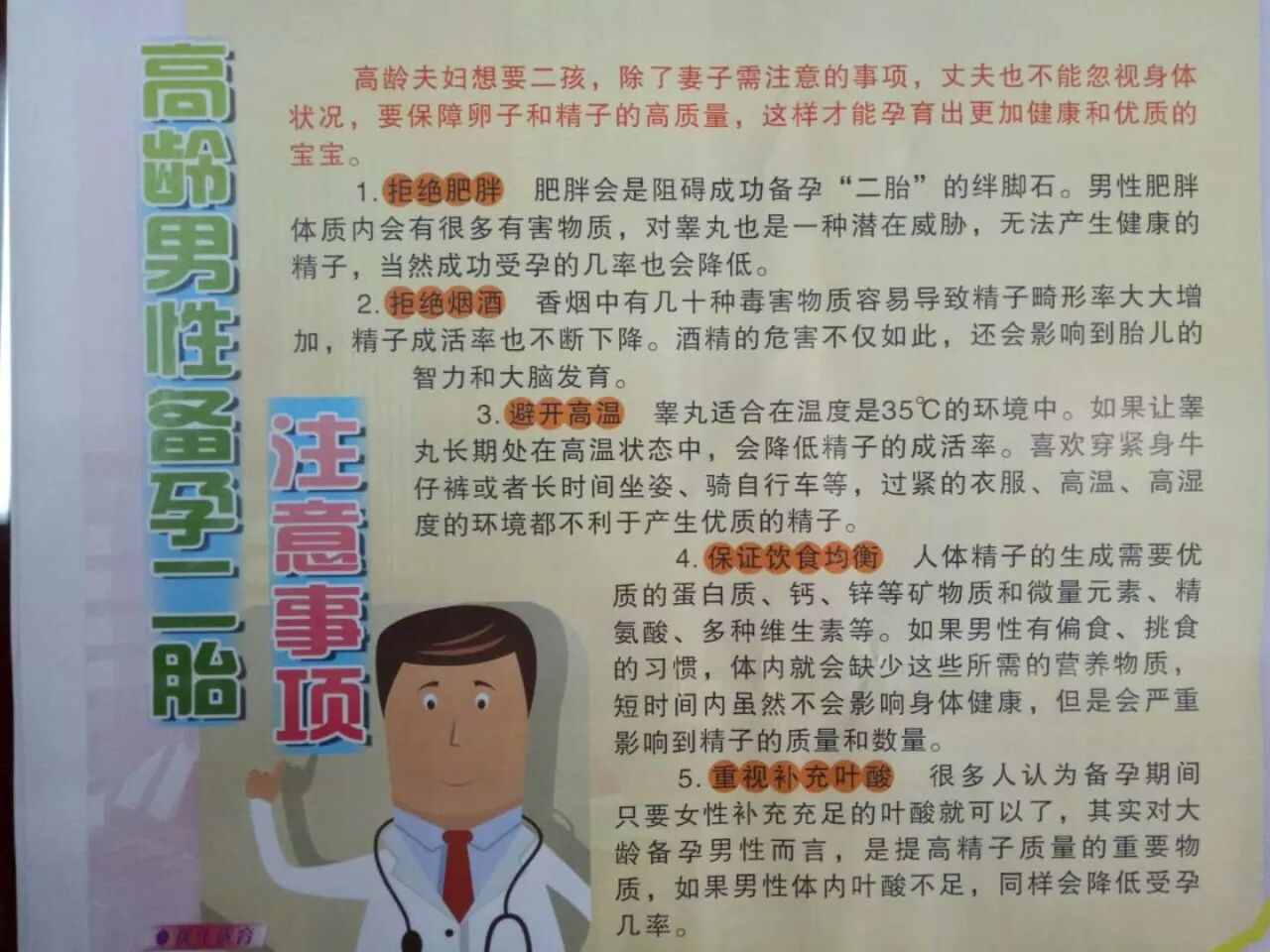 二胎政策放宽以来,很多家庭都开始计划将自己的三口之家升级为四口之家。但是,很多夫妻又开始犹豫,高龄夫妇要个二胎貌似并不是件简单的事。除了妻子要有很多注意事项,养好身体为备孕做准备外,丈夫也不能忽视身体状况,在备孕期间都要多加注意,要保障卵子和精子的高质量,这样才能孕育出更加健康和优质的宝宝。