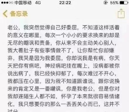 我一个从北方嫁到南方的大学师姐,也是因为丈夫的责任缺失,在产后月子期间患上了严重的产后抑郁症。