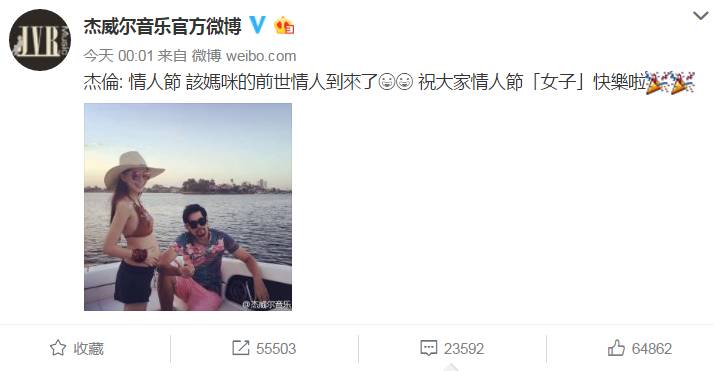 今日凌晨,周杰伦公司官微@杰威尔音乐官方微博 发布喜讯,称周杰伦和昆凌的二胎是男宝宝。情人节零点一到就迫不及待的撒狗粮,小秘书表示吃的心甘情愿。