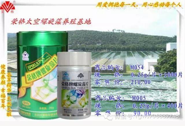 国内唯一把2种螺旋藻实现混养的优质产品。即:把产量最高的“顿顶”品种与质量最好的“极大”品种进行混养,并通过“神州5号飞船”带入太空进行了育种试验,成功培育出“太空螺旋藻” 。荣格螺旋藻片藻粉含量高达98%。