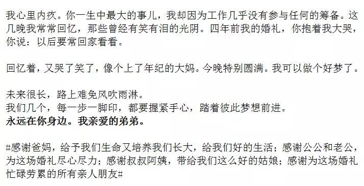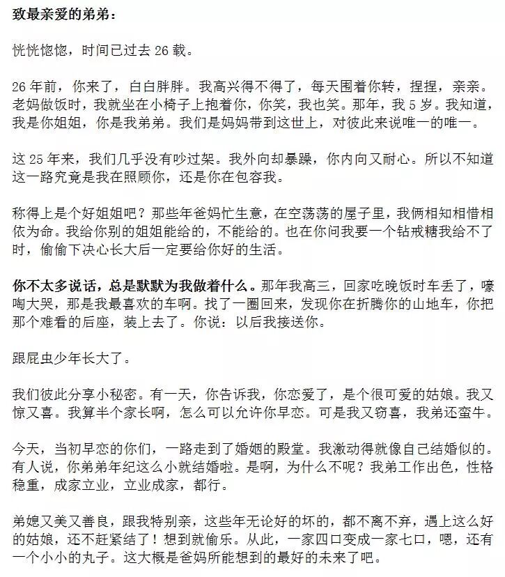 11月12日,26岁的杭州小伙小朱结婚,而其姐姐923字长信更是刷爆朋友圈,看过的人都直呼:有个姐姐真好!