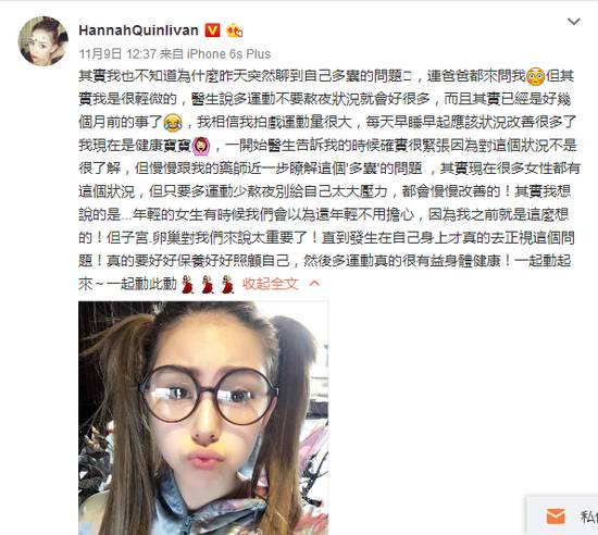 生下第一胎后,昆凌曾在微博坦承,自己得了一个叫“多囊性卵巢症候群”的病。