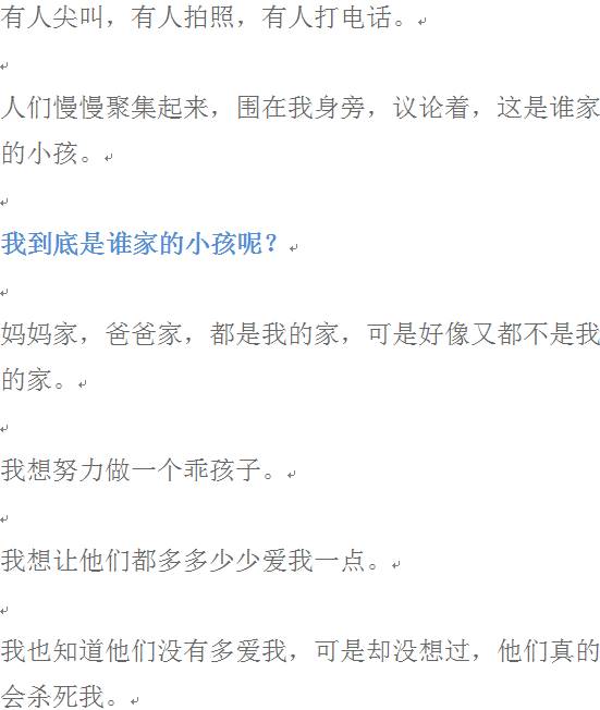 我试着揣摩孩子战战兢兢、对身边的大人察言观色的心理,写下这篇文章,希望能让更多人看到一个孩子的无助和恐惧。