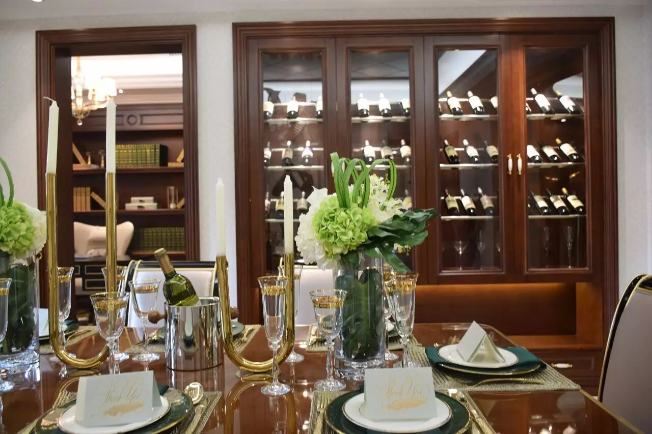 U型厨房在所有形态的厨房中使用率是最高的,取、洗、切、烹、盛等系列动作一气呵成,一道道美食呈现在桌前,在制作美食的同时,你还能欣赏到窗外江景,既要人间烟火,又要人间风景。在餐厅与厨房之间,更多的是舒适与亲切,一家人围着餐桌吃饭、其乐融融,三五好友开个小趴,不亦乐乎。
