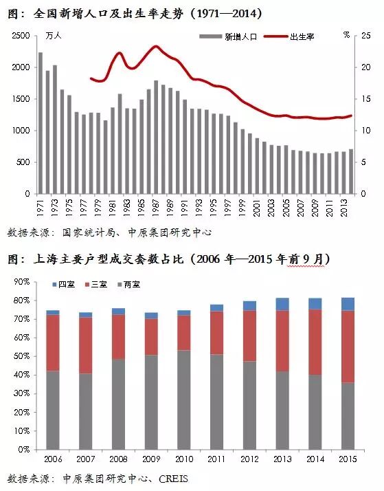 以上海为例,2015年前9月,三房户型成交占比首次超过二房,成为市场中成交比例最高的户型。在2012年之前,二房户型是市场上的绝对主力,占比超过50%,这一现象自2013年起发生明显变化,三房与二房占比差距不断缩小,而2013年正是提出“单独二胎”的时间点。预计随着“全面二胎”政策的落地,包括改善需求的不断释放,对三房以上户型,以及可灵活整合房型的多种需求将不断增加,各类限制性政策有望逐步失效。