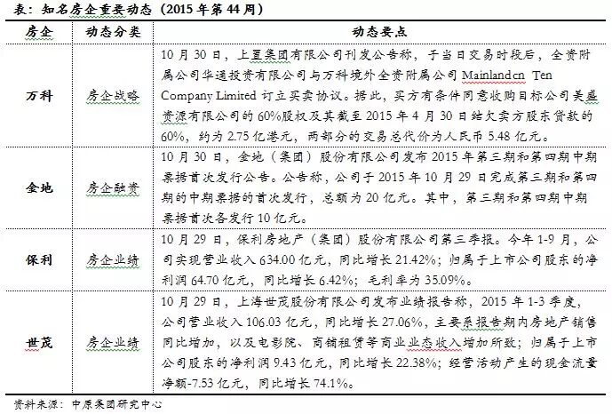 ◇ “银十”新房成交走高:在930新政以及“双降”等多重利好之下,10月各地新房成交表现超过9月。中原监测的40个城市数据显示,10月新建住宅成交面积环比上升10%,其中一线、二线及三四线城市分别上升2%、13%、6%。正是由于930新政主要针对非限购城市的信贷放松,因此二线城市10月表现最为活跃。