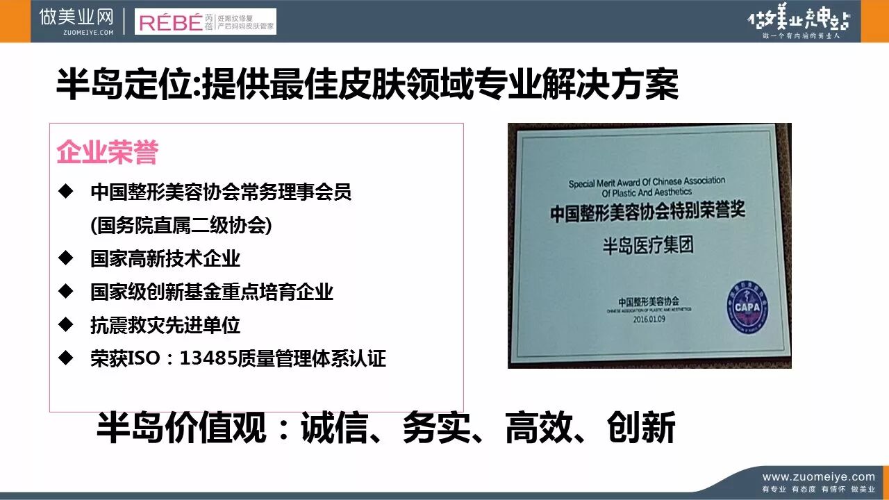 同时我们也获得2017年深圳宝安第四届创新大赛生物与生命健康一等奖。同时我们半岛医疗集团在国内医疗整形行业最大的研发团队,将近一百人。那2018年我们公司也会有很多一些迭代的产品和创新产品将面世,后面也会在做美业平台一一为大家介绍。