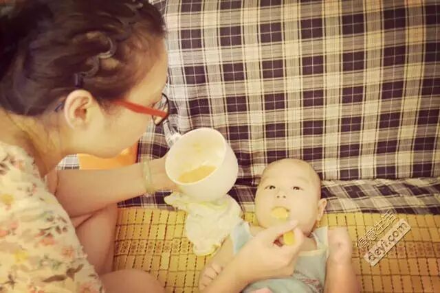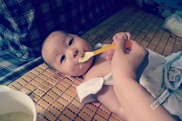 10:40 米糊里加了果泥,调匀,一口接一口,几分钟就搞光了