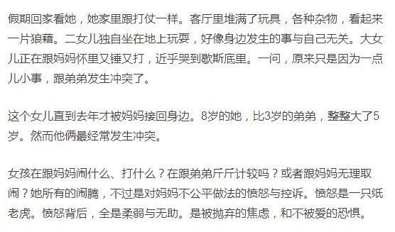 所以,第二个孩子的出生,让她产生了灾难感。她心中不仅有愤怒,也有对自己的不确信。母亲在她眼中,是无力同时抚养两个孩子的。她也对自己不信任。