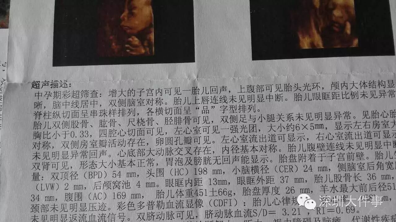 怀孕21周时 做的超声二级排畸检查,报告同样显示正常。