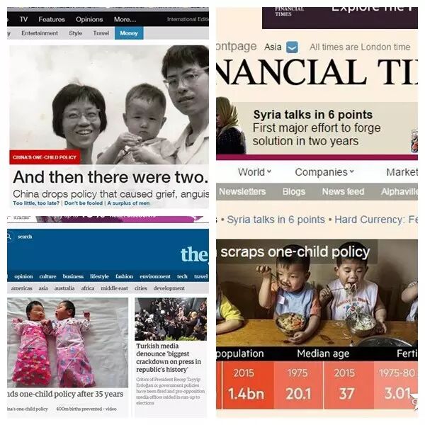 中国放开二胎政策了,国内媒体报道都看烦了吧,来看看国外各大媒体:CNN头条、BBC头条、CBC头条、WSJ头条、NYT头条......都是头条!西方国家紧张了!中国放开二胎,意味人口的增长,也意味着中国会抢夺更多资源,而这是西方国家不能容忍的!