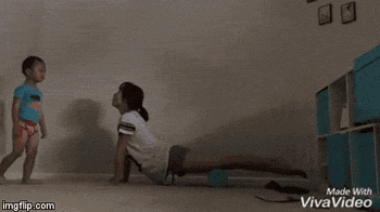 孩子哭了闹了,让他到背上来,来一组平板支撑。