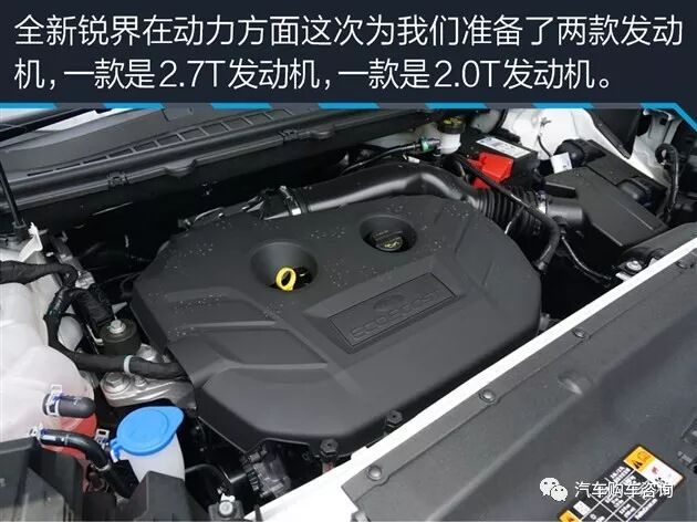 动力方面,国产全新锐界将搭载2.0T和2.7L EcoBoost系列涡轮增压发动机,其中2.0T发动机最大功率为180kW,峰值扭矩为350Nm;2.7T发动机的最大功率为240kW,峰值扭矩502Nm。传动系统将匹配6速手自一体变速器。另外,2.0T车型还将提供两驱版与四驱版车型可选,2.7T车型则标配四驱系统。