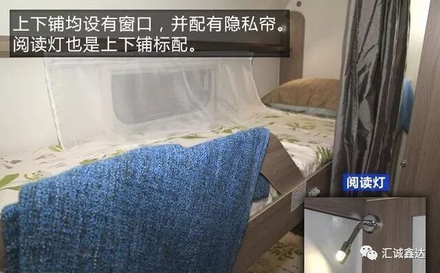上下铺均配有窗口,并配有隐私帘。阅读灯噎死上下铺的标配。
