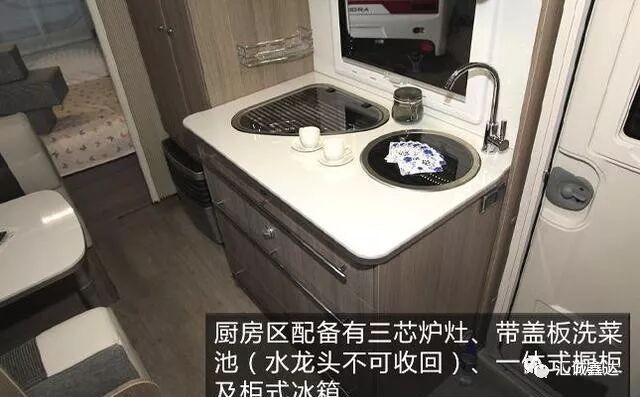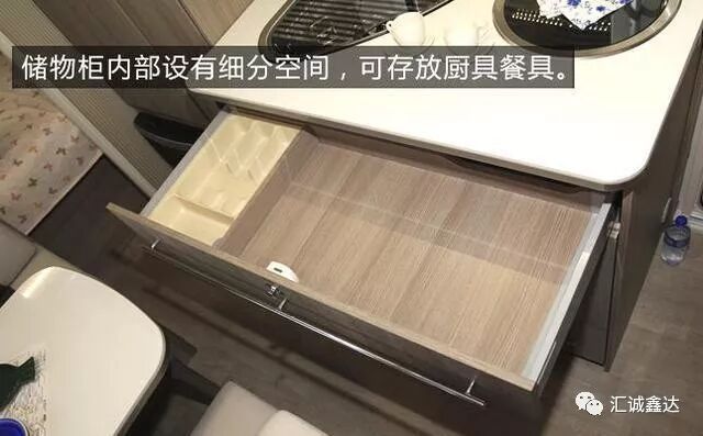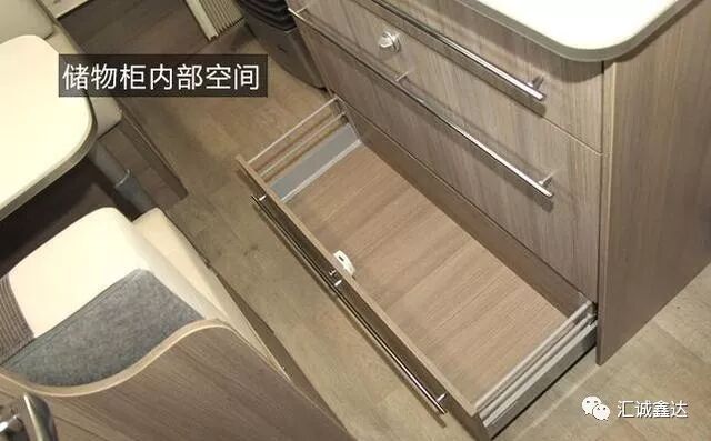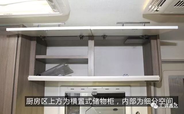 厨房区左侧为大型储物柜及德国Truma房车专用暖风机。