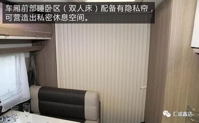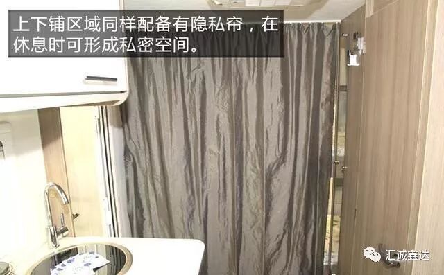车厢前部睡卧区(双人床)配有隐私帘,可营造出私密的休息空间。