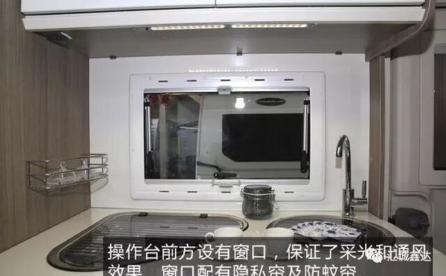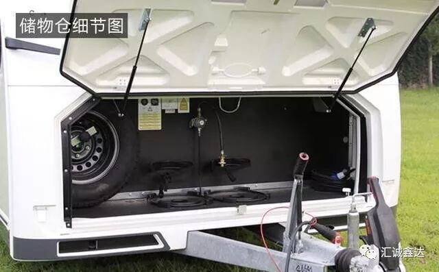 车头上方为宽大的窗口,保证了车厢内的采光效果。窗口下方为储物仓,仓内配有备胎及燃气接口。
