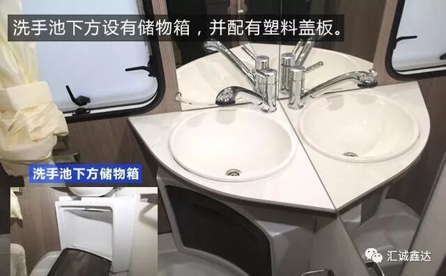 洗手池下方设有储物箱,并配有塑料盖板。