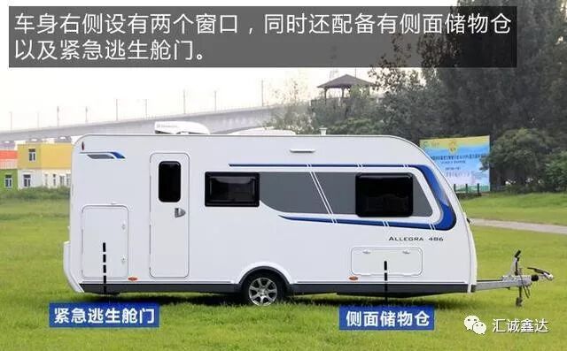 车身右侧设有两个窗口,同时还配有侧面储物仓以及紧急逃生舱门。