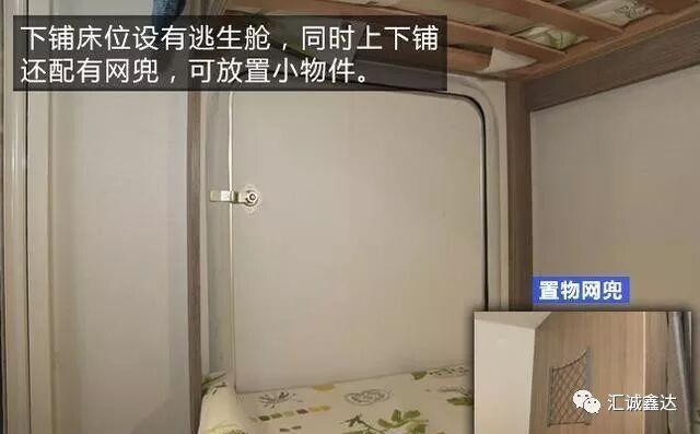 紧急逃生舱门与上下床的下铺及下方储物空间相贯通。