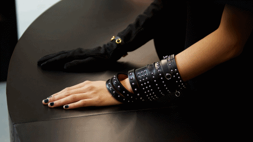 取材自传奇Colliers de Chien的全新Mini Dog手镯沿用了双圈设计、方形饰孔、方形和圆形饰钉等经典元素,在细腻的swift小牛皮,box小牛皮与优雅技艺设计而成的别致搭扣映衬下,创造出低调的优雅主张。